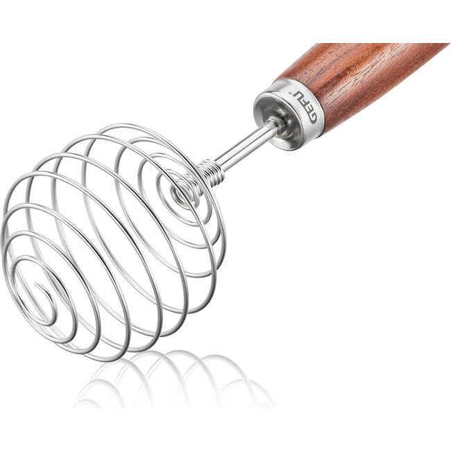 De GEFU Bolgarde NEDO is een slimme garde voor wie graag precies en gecontroleerd werkt. Dankzij het speciale spiraalontwerp meng je vloeibare en halfvloeibare ingrediënten snel en gelijkmatig, zonder klontjes. Ideaal voor dressings, sauzen, roerei en cakeglazuur.