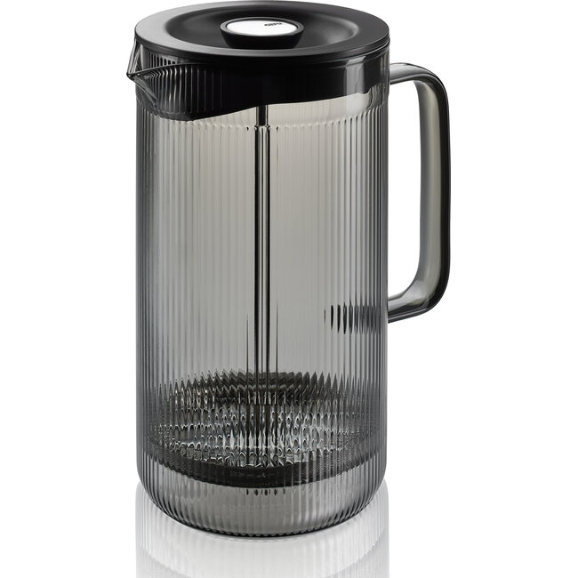 De GEFU CRISTIANO Coffee Maker 1.000 ml is de perfecte combinatie van stijl, inhoud en functionaliteit. Deze elegante French press is uitgevoerd in mondgeblazen borosilicaatglas met een karakteristieke ribbelstructuur in smoke grey en vormt een moderne blikvanger in iedere keuken.