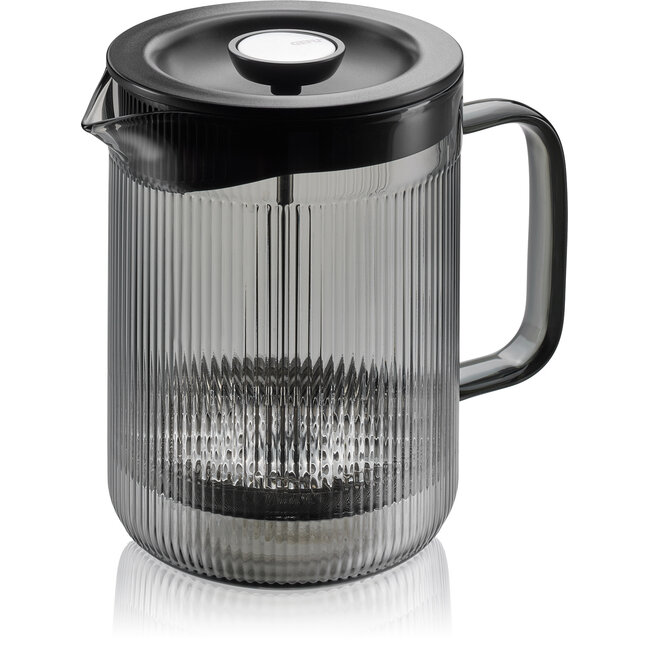 De GEFU CRISTIANO Coffee Maker combineert modern design met klassieke koffiebereiding. Deze elegante French press van 600 ml is uitgevoerd in mondgeblazen borosilicaatglas met een verfijnde ribbelstructuur in smoke grey. Een stijlvolle toevoeging aan iedere keuken of koffietafel.