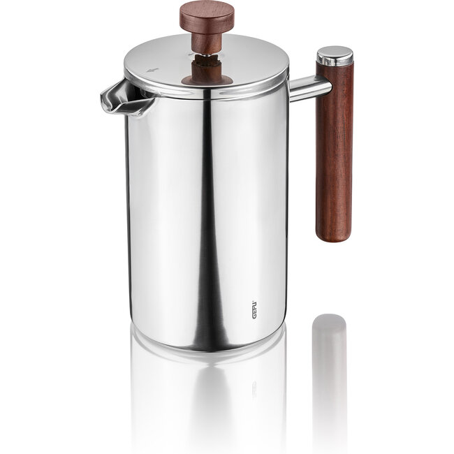 Met de GEFU GUSTAVO coffee maker bereid en serveer je aromatische koffie in stijl. Deze elegante French press is uitgevoerd in hoogwaardig, dubbelwandig roestvrij staal en combineert een uitstekende isolerende werking met een tijdloos design. Dankzij de dubbele wand blijft de koffie langer warm, terwijl de buitenzijde comfortabel hanteerbaar blijft.
