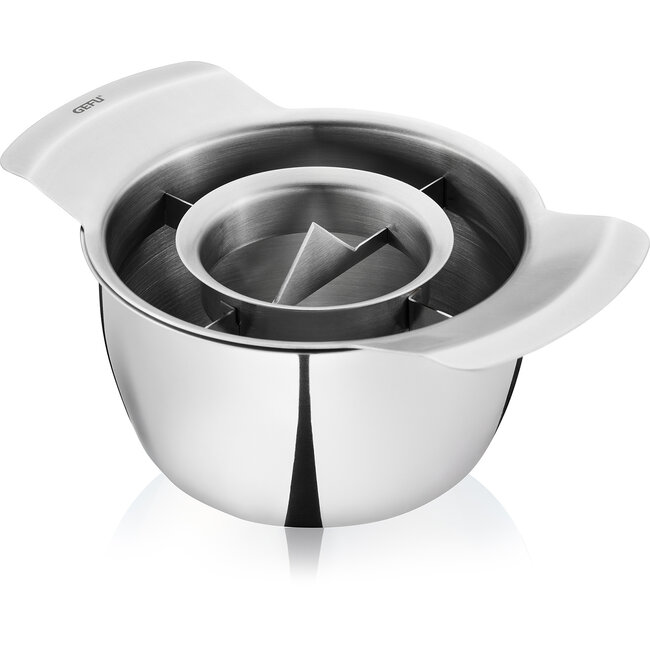 Met de GEFU PUNICO granaatappelontpitter wordt het verwerken van granaatappels snel, schoon en moeiteloos. Deze slimme 2-in-1 keukentool halveert én ontpit de vrucht in één beweging, zonder spatten of geknoei. De pitjes worden netjes opgevangen in de geïntegreerde schaal, terwijl het vruchtvlees effectief wordt gescheiden.