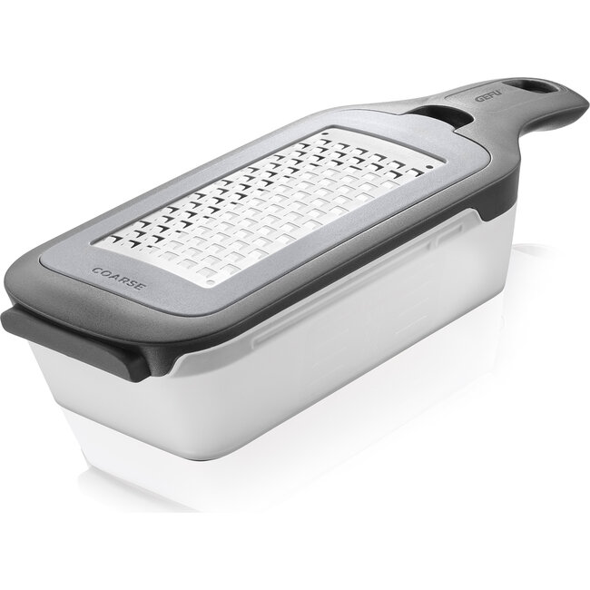 Met de RASPELLA rasp van GEFU werk je snel, precies en veelzijdig in de keuken. Dankzij de twee verwisselbare raspinzetten wissel je eenvoudig tussen fijn en grof raspen. Ideaal voor groenten, kaas, chocolade, citrusvruchten en specerijen, zowel tijdens de bereiding als direct boven het gerecht.