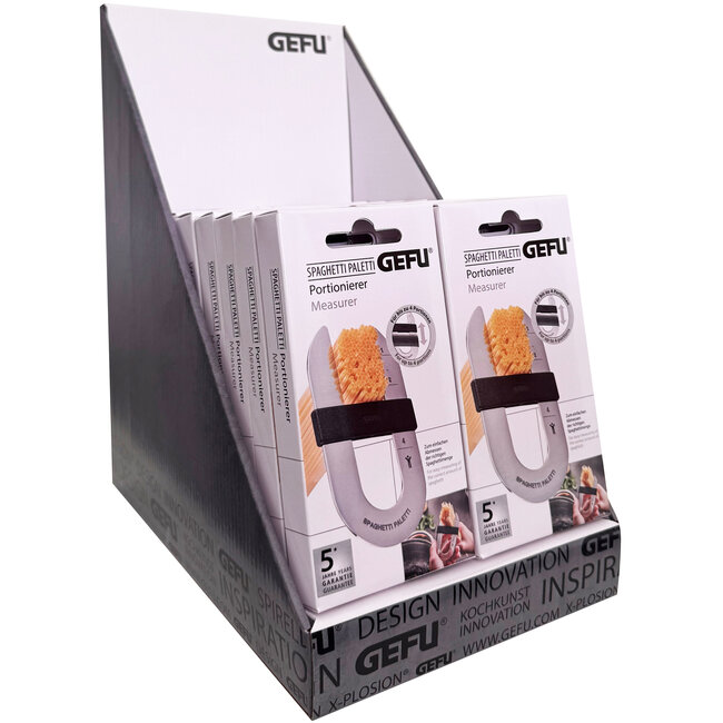 Met deze slimme GEFU Spaghetti Paletti neem je het gokken over hoeveel pasta je nodig hebt voorgoed weg. Je schuift de markering eenvoudig naar de gewenste portiegrootte en meet zo precies de juiste hoeveelheid spaghetti af – ideaal voor één tot vier personen.