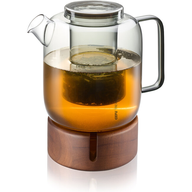 De GEFU TREVIO theepot met warmhouder brengt Scandinavische eenvoud en natuurlijke warmte samen in één stijlvol theeset. Deze mondgeblazen theepot van 1.500 ml wordt gecombineerd met een elegante houten warmhouder in walnootlook, waardoor thee langer op temperatuur blijft en het geheel een rustige, verfijnde uitstraling krijgt.