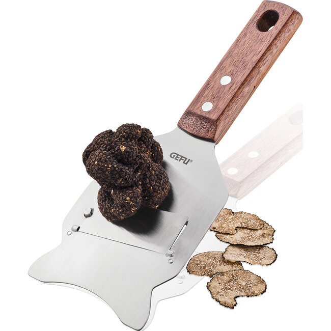 Met de GEFU LAMEZZA truffelschaaf snijd je eenvoudig flinterdunne en gelijkmatige plakjes van truffels, paddenstoelen en harde kazen. Een klassiek keukenhulpmiddel voor verfijnde gerechten en professionele presentatie.